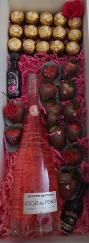 Ferrero Rocher, Wine, Chocolate Dipped Strawberries, & Extra Treats Large “Picture” $120 Med $100 Small $80